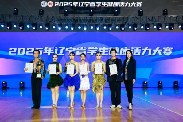 11月14日,2025年辽宁省学生健康活力大赛在辽宁省实验中学分校体育馆圆满落幕。本次比赛是我校体育舞蹈校队建队一年以来的首次外出参赛。14 名队员奋勇拼搏,凭借精湛的舞技与默契的配合脱颖而出,成功斩获业余组单人单项 C 第一名、第六名及第七名,单项 R 第一名和第六名,以及团体舞第三名的优异成绩,为学校赢得了荣誉。
