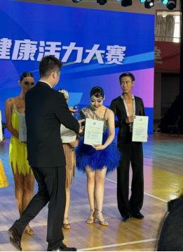在备受关注的业余组单人单项C&R(恰恰/伦巴)比拼中,我校学子表现格外亮眼。经济与管理学院刘洢嘉同学凭借稳定的发挥与独特的艺术诠释,成功摘得恰恰单项金牌;生命工程学院吴真真则以灵动的舞姿与强大的气场脱颖而出,将伦巴单人单项金牌收入囊中。在团体舞项目中,8名队员心往一处想、劲往一处使,最终荣获团体舞第三名的佳绩。此外,经济与管理学院王一涵在单人单项中取得两个第六名的好成绩,生命工程学院黄宇洁则斩获第七名。